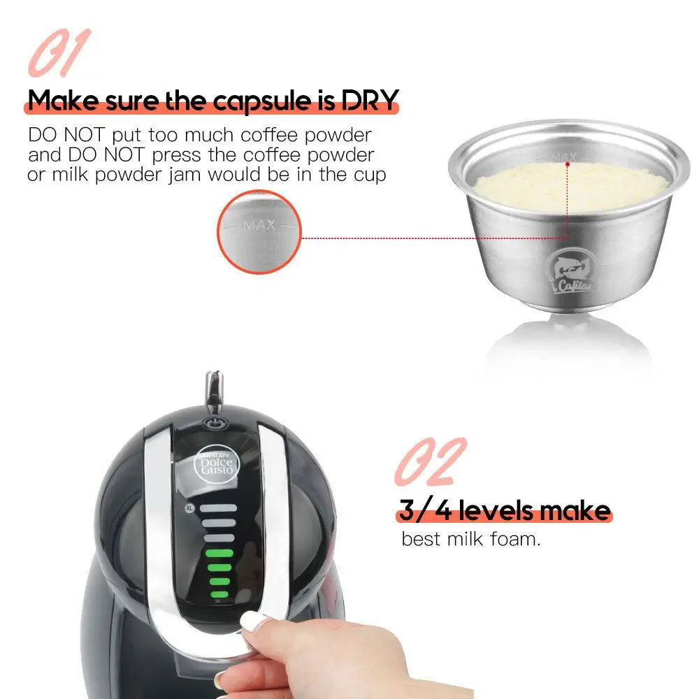 Reusable Stainless Steel Pod for Nescafe Dolce Gusto Coffee Machine Espresso Pod Tamper